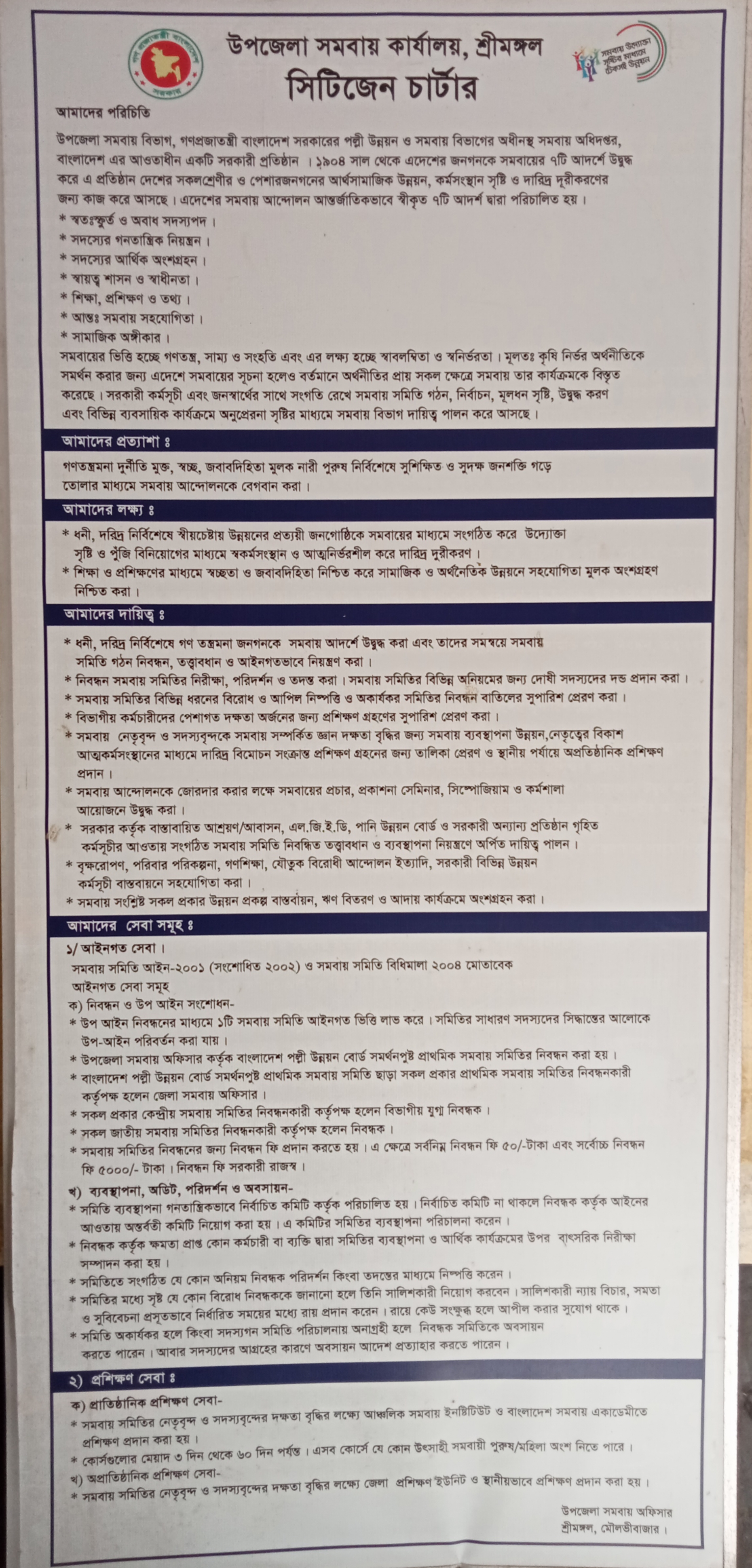 সমবায় সমিতি আইন-২০০১ (সংশোধিত ২০০২) ও সমবায় সমিতি বিধিমালা ২০০৪ মোতাবেক আইনগত সেবা সমূহ: